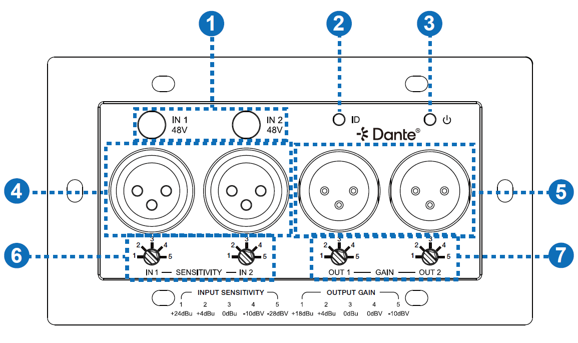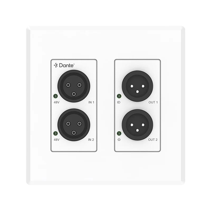 Denne kompakte 2-kanals analoge XLR Dante-konverter bruger Dante® Ultimo 2x2-platformen, der problemfrit forbinder traditionelle analoge lydenheder til et Dante® digitalt netværk. Designet som en standard 2-GANG US vægplade, giver den fleksibel integration til både ældre og moderne lydsystemer.
